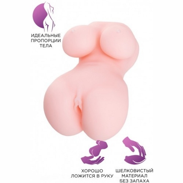 Объемный бюст, мягкий животик и выпуклости ягодиц - все это будоражит воображение и пробуждает сексуальный интерес. За тонкую талию удобно держать, входя в ее реалистичное рельефное влагалище...