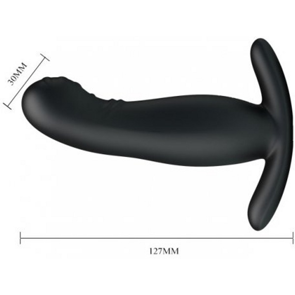 Стимулятор простаты черного цвета выполнен из мягкого силикона, на поверхности нет швов или зазубрин - ничего не доставит дискомфорта. Эргономичная форма создана именно для массажа простаты с учетом всех анатомических особенностей. Головка округлая, загнута специальным образом для максимального давления с 4-мя различными волновыми функциями стимуляции.
