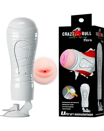 «Crazy Bull Flora» - Мастурбатор выполнен в виде пластикового тубуса, внутри которого находится, реалистичная вагина. Тубус в основании имеет мощную присоску, что позволяет Вам прикрепить его к любой ровной поверхности, а также, отрегулировать угол наклона. Совершенно различные ощущения, и абсолютно разная стимуляция пениса, все это приведет Вас к самому яркому оргазму. Сама вагина выполнена из киберкожи материала нового поколения, который, по тактильным ощущениям максимально имитирует кожу человека, и, даже, имеет способность нагреваться прямо у Вас в руках, буквально за считанные секунды. Внутренний рельеф вагины, со множеством шариков, шипиков и выступов, практически полностью имитирует анатомическое строние тела, что делает Ваши ощущения максимально реалистичными.