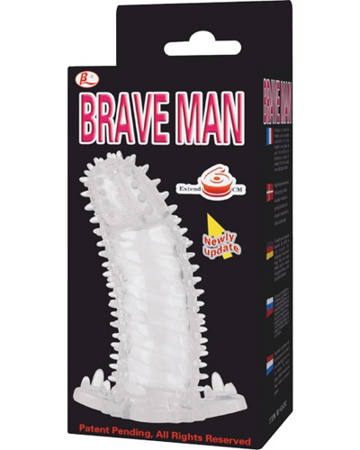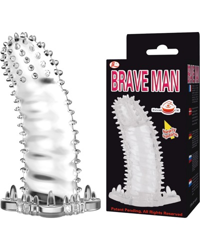 Brave Man - Прозрачная насадка на пенис, эластичная, сделана из геля. Насадка с ярко выраженной головкой, ствол покрыт мягкими шипиками. Так как насадка закрыта, можно использовать вместо презерватива.