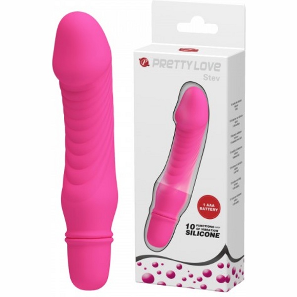 Stev - Водонепроницаемый вибромассажер выполнен из 100% медицинского силикона. Имеет 10 режимов бесшумной вибрации, переключаются они с помощью одной кнопки в основании. Верхушка выполнена в виде головки для более яркой стимуляции эрогенных зон.
