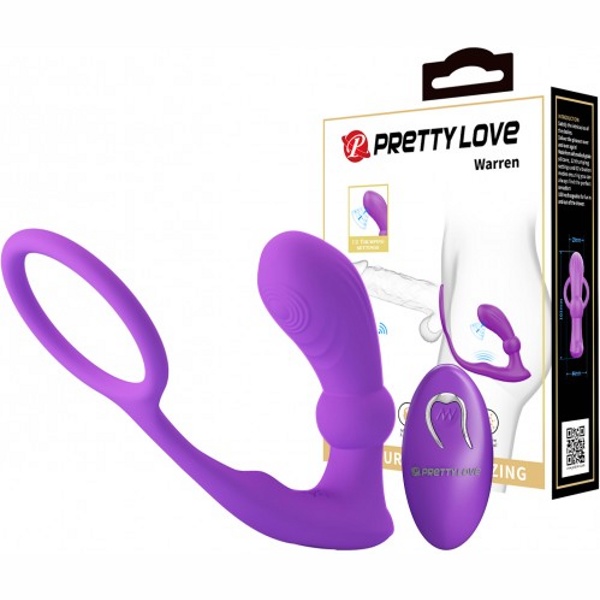 Pretty Love Warren - Пульсирующий вибромассажер простаты с эрекционным кольцом и с пультом ДУ