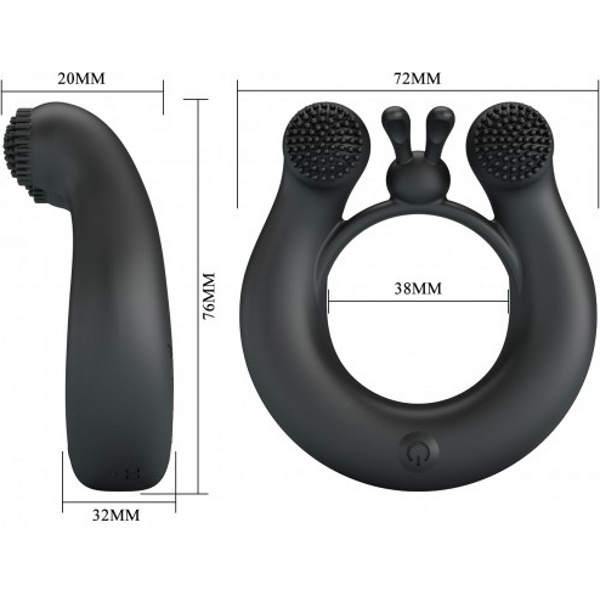 Внутри кольца по обе стороны расположены два моторчика, которые обеспечивают 12 соблазнительных режимов вибрации, при вхождении они будут стимулировать клитор девушки, доводя ее до многочисленных оргазмов.