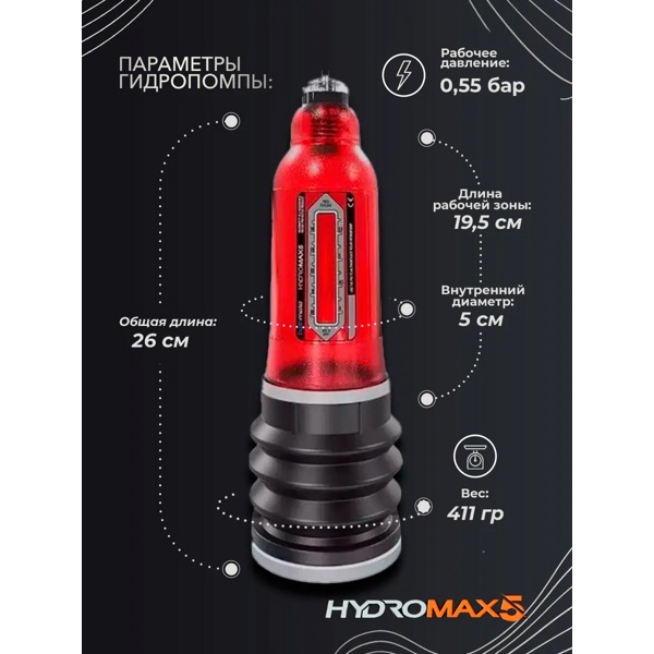 HYDROMAX5 - Мощная и эффективная гидропомпа для пользователей с размером пениса от 7,5 до 12,5см, диаметр до 4,5см