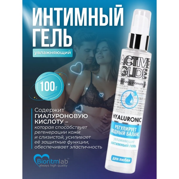 Увлажняющий интимный гель Active Glide Hyaluronic. - универсальная смазка, подходящая как для вагинального, так и для анального секса с игрушками и без.