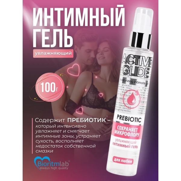 Увлажняющий деликатный интимный гель Active Glide Prebiotic - универсальная смазка, подходящая как для вагинального, так и для анального секса с игрушками и без.