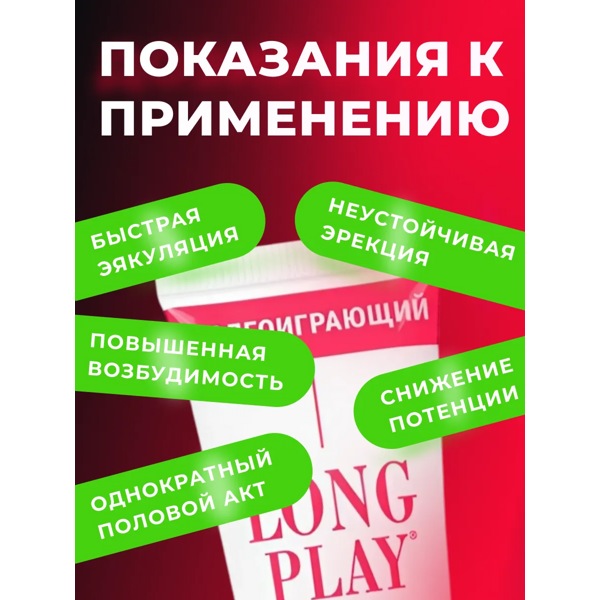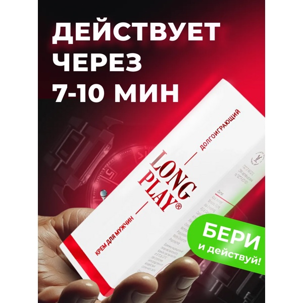Крем Long Play, производимый на водной основе, оказывает увлажняющее действие на мужские половые органы. Этот эффективный пролонгатор отличается приятным ароматом и не менее приятными тактильными ощущениями. Он быстро впитывается и не раздражает чувствительную и нежную кожу мужских половых органов. Даже минимальное количество этого крема обеспечит значительное продление эрекции и позволит в полной мере насладиться сексуальными играми. Благодаря воздействию крема также увеличится чувствительность вашей партнерши, а ваши взаимные желания достигнут просто невероятной силы.