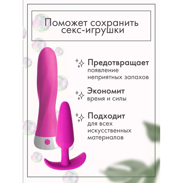- быстрое и качественное очищение интимных аксессуаров и тела от различных загрязнений, в том числе от силикона