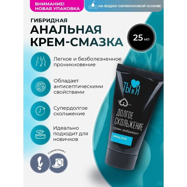 Компания «Биоритм» позаботилась о том, чтобы столь интимный процесс, как анальный секс, проходил безболезненно и максимально приятно, приготовив специальный анальную смазку, которая обладает обезболивающим эффектом. Это лубрикант люкс-класса из серии «Я и ты». Смазка представляет собой прозрачный гель в стильном черном флаконе. Благодаря этому лубриканту Вы забудете о болевых ощущениях во время анального секса и узнаете, что такое настоящее длительное скольжение и безмерное удовольствие. Гель сделан на силиконовой основе, поэтому не подходит для интимных игрушек из силикона.