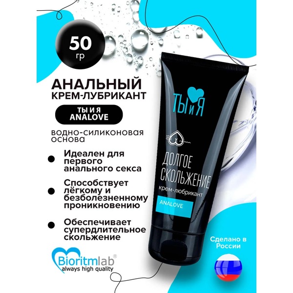 Компания «Биоритм» позаботилась о том, чтобы столь интимный процесс, как анальный секс, проходил безболезненно и максимально приятно, приготовив специальный анальную смазку, которая обладает обезболивающим эффектом. Это лубрикант люкс-класса из серии «Я и ты». Смазка представляет собой прозрачный гель в стильном черном флаконе. Благодаря этому лубриканту Вы забудете о болевых ощущениях во время анального секса и узнаете, что такое настоящее длительное скольжение и безмерное удовольствие. Гель сделан на силиконовой основе, поэтому не подходит для интимных игрушек из силикона.