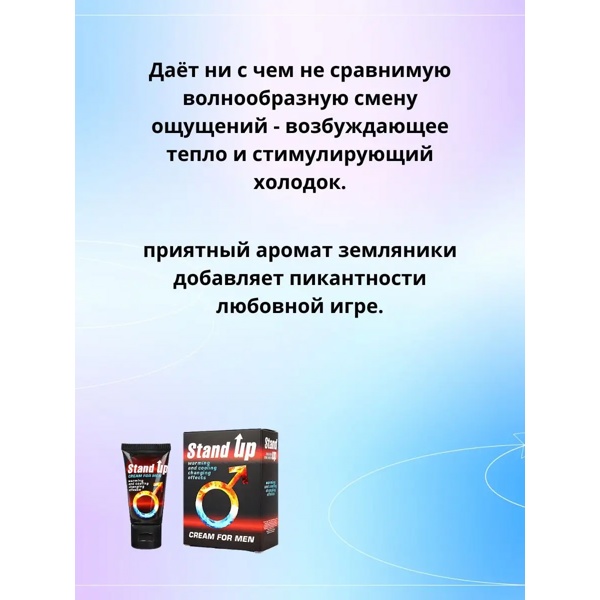 Крем STAND UP существенно отличается от других стимуляторов тем, что дарит мужчине необычные, приносящие удовольствие ощущения.