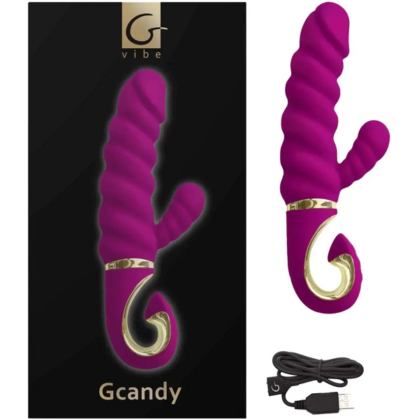 Gvibe Gcandy - роскошный вибратор с клиторальным стимулятором, мимо которого не пройдет ни одна женщина. Стильный дизайн, эргономичная форма, необычный витой рельеф и вращающаяся головка делают игрушку универсальным помощником в реализации самых ярких фантазий.