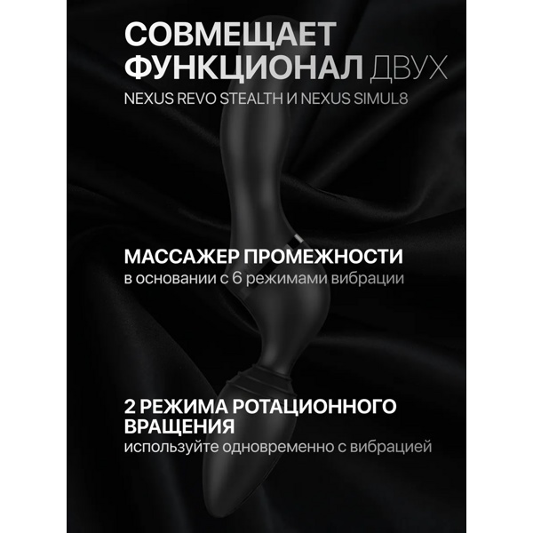 Nexus Revo Twist — гибридная игрушка, которую можно использовать несколькими способами, сочетая не только режимы стимуляции, но и различные формы: классическую анальную пробку и анатомический стимулятор простаты.
