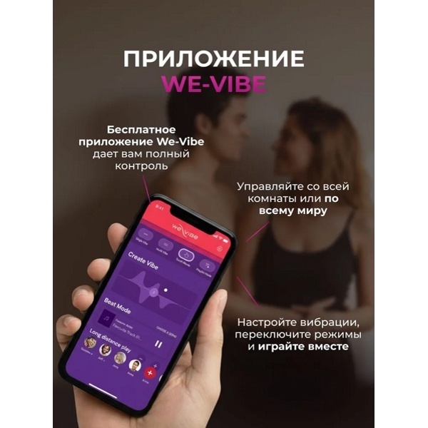 Приложение We-Vibe для управления игрушкой на любом расстоянии значительно расширяет функционал игрушки, открывая режимы реагирования на звуки, возможность создания собственных ритмов вибрации, возможность управления моторами игрушки по отдельности и доступ к дополнительным уникальным функциям Chorus Pro.