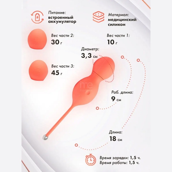 шарики-насадки можно использовать последовательно от легкого к тяжелому для трехступенчатой тренировки вагинальных мышц или сразу подобрать соответствующий уровню подготовки;