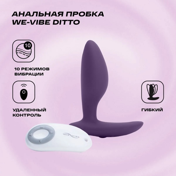We-Vibe Ditto - универсальный вибростимулятор для анальной или вагинальной стимуляции с 10 режимами вибрации для использования в паре или в одиночку, подходит для половых актов, мастурбации, а также может использоваться во время прелюдии.