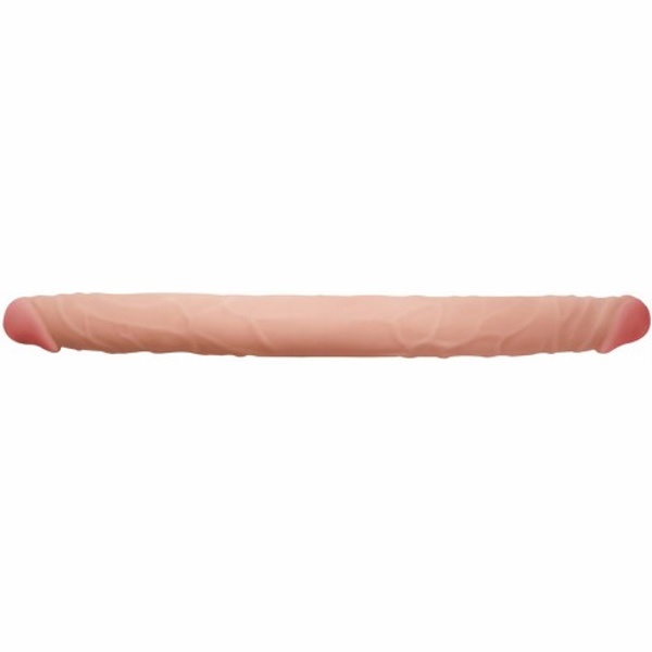 Двусторонний фаллоимитатор имеет рельефную поверхность для дополнительной стимуляции эрогенных зон. Реалистичные мягкие головки на концах игрушки обеспечивают комфортное введение.