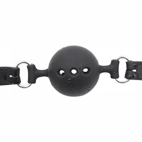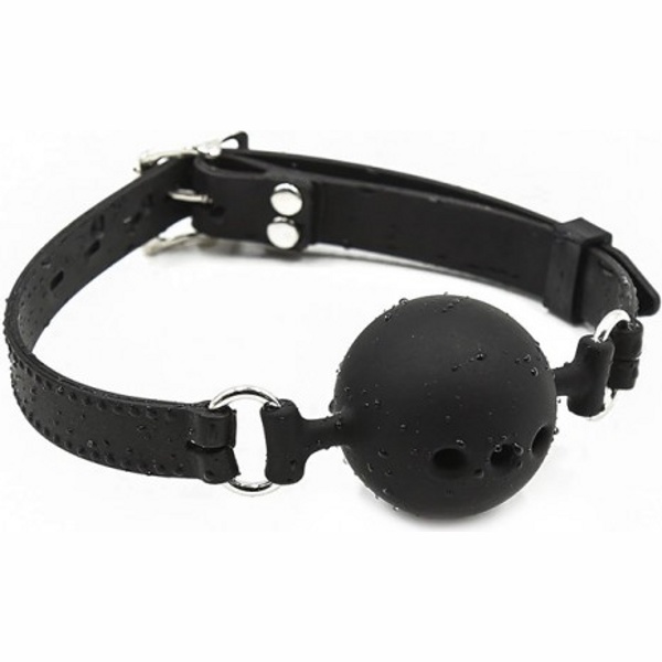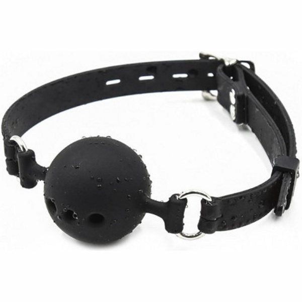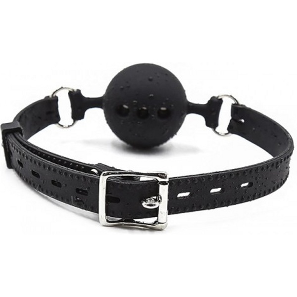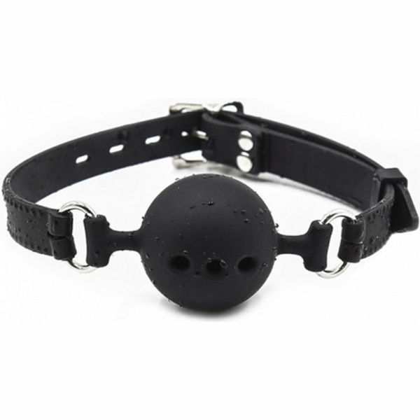 БДСМ-аксессуар выполнен из силикона, поэтому за ним легко ухаживать, просто промывайте изделие после каждого использования под проточной водой с жидким мылом и оставляйте просушиваться на полотенце. Силиконовый ремешок регулируется с помощью ременной застежки на затылке, размер ремня универсальный, подходит на любой объем головы. Металлическая фурнитура серебристого оттенка выглядит стильно и дорого в сочетании с черным цветом силикона. Шар имеет отверстия, через которые воздух свободно проникает для дыхания.