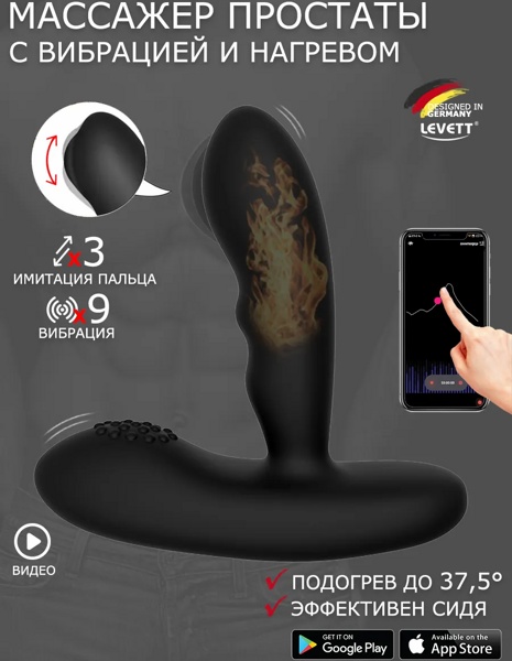 Levett Bodi - Стимулятор простаты с подогревом и интенсивной стимуляцией в головке, управление телефонным приложением