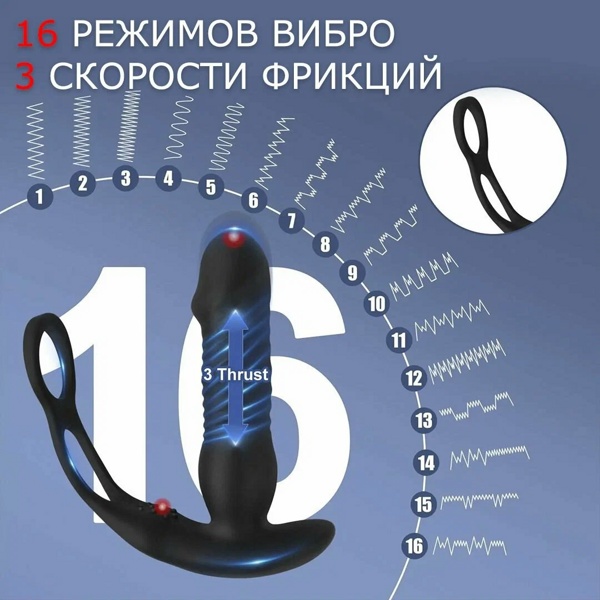 Массажер для простаты имеет 10 разных режимов вибраций и 10 режимов фрикций. Благодаря различному сочетанию режимов можно получить очень качественный индивидуальный массаж. а так же приятные ощущения. Вибратор обладает защитой от воды IPX7. Он полностью водонепроницаем и его можно использовать в душе и ванне. Благодаря этому свойству уход за вибратором очень прост - после использования его надо промыть под струёй воды с использованием мыла. Для комфортного введения использовать массажер рекомендуем с лубрикантом на водной или силиконовой основе. Массажёр простаты отлично подойдёт не только для мужчин, но и для женщин. Они могут использовать вибрацию для стимуляции клитора, а вибрацию+фрикции для стимуляции точки G или ануса.