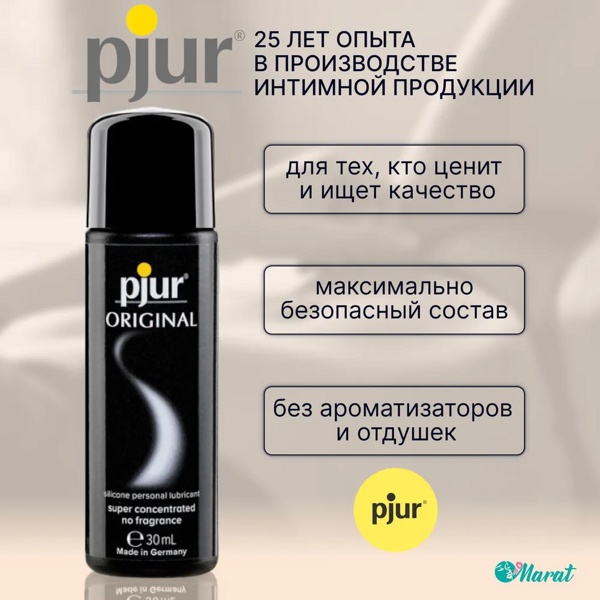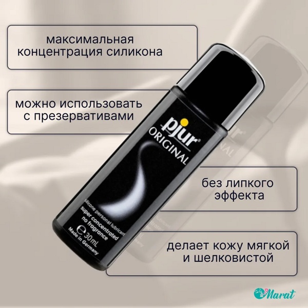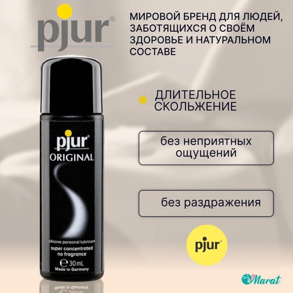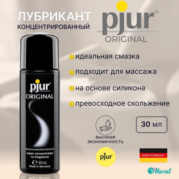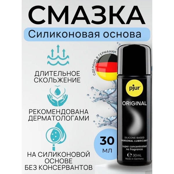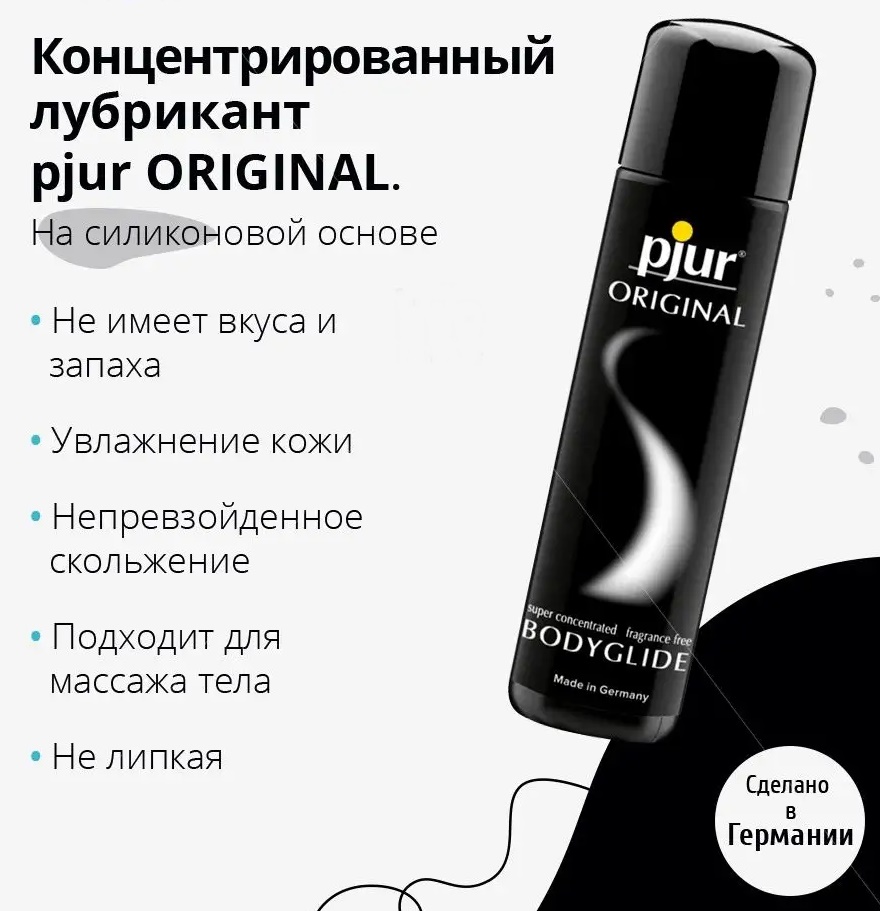 Pjur Original - концентрированный лубрикант на силиконовой основе без вкуса и запаха с очень длительным эффектом скольжения. Смазка на основе силикона идеально подходит для массажа тела и для секса.