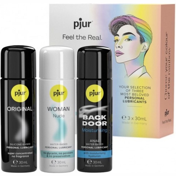 Набор Pjur Box состоит из трех самых популярных лубрикантов бренда, по 30 мл каждый!