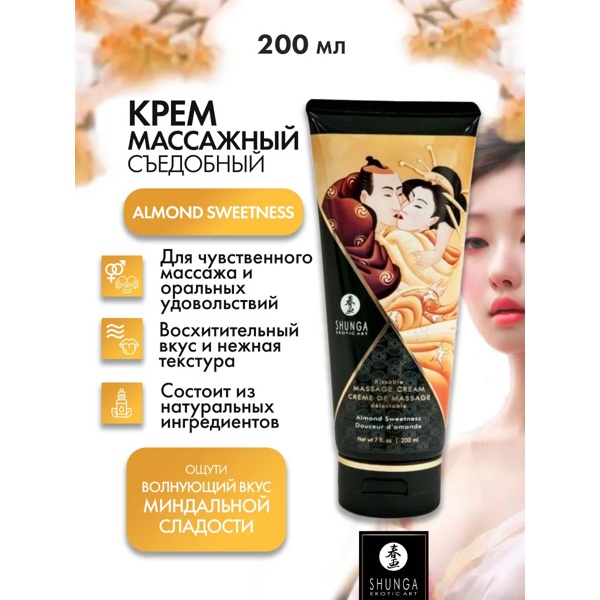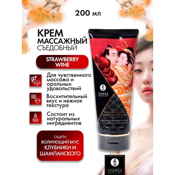 Съедобный крем для эротического массажа Shunga Kissable Massage Cream обладает расслабляющим и возбуждающим эффектом, увеличивает чувствительность эрогенных зон.