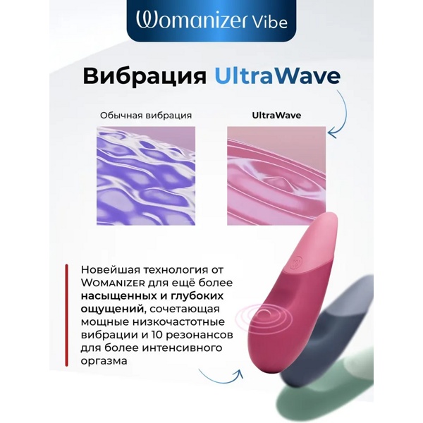 Womanizer Vibe – это бесшумный клиторальный вибратор, который предлагает новый вид стимуляции благодаря революционной технологии UltraWave Vibration!