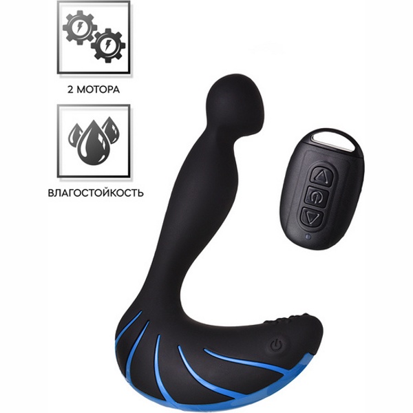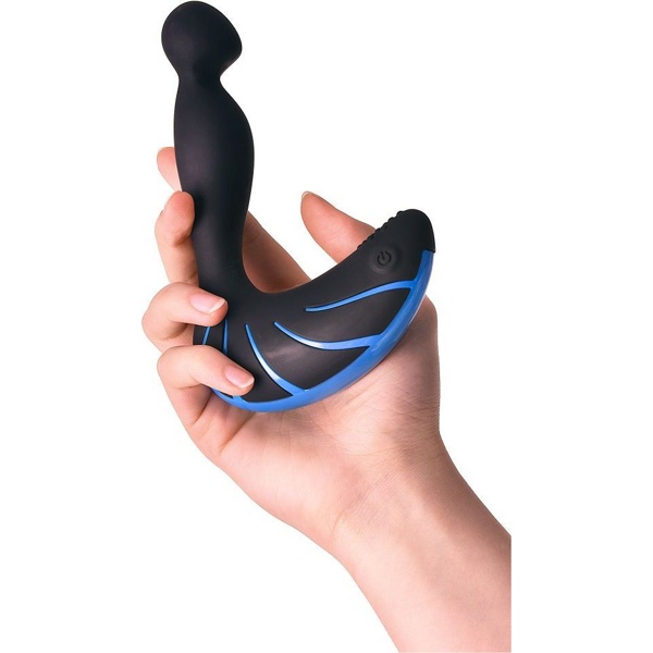 Одна часть игрушки — рельефный стимулятор с загнутой головкой — активно массирует предстательную железу.